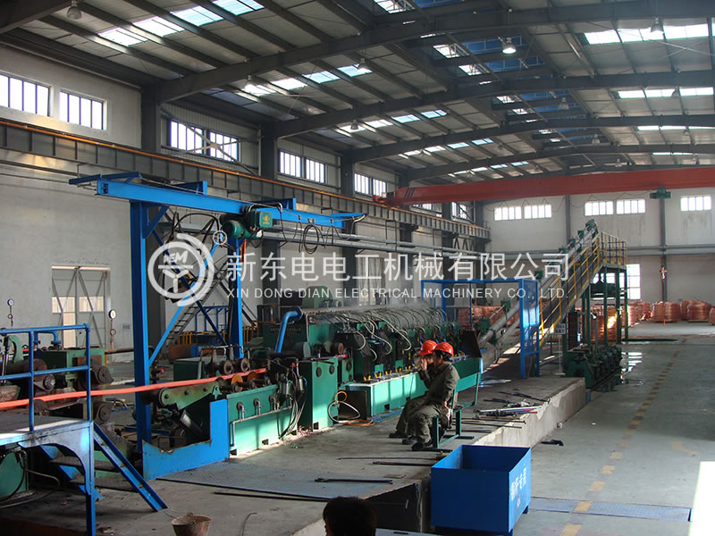本生產(chǎn)線積徐州新東電電工多年研發(fā)銅連鑄連軋技術之經(jīng)驗,綜合美國南方線材、德國SMS、意大利 PROPERZI 同類設備的優(yōu)勢特點,為國內(nèi)獨創(chuàng),可用100﹪廢舊紫銅作原料,采用先進的火法精煉技術,直接在連鑄連軋生產(chǎn)線上生產(chǎn)符合國標的光亮低氧銅桿。